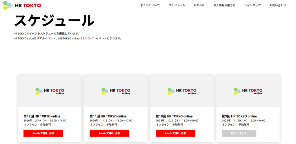 対面型イベントに参加できなかった地方の中小企業やスタートアップが、コスト0(online参加のみは無料/HR TOKYO会員は有料)で議論に参加できます。